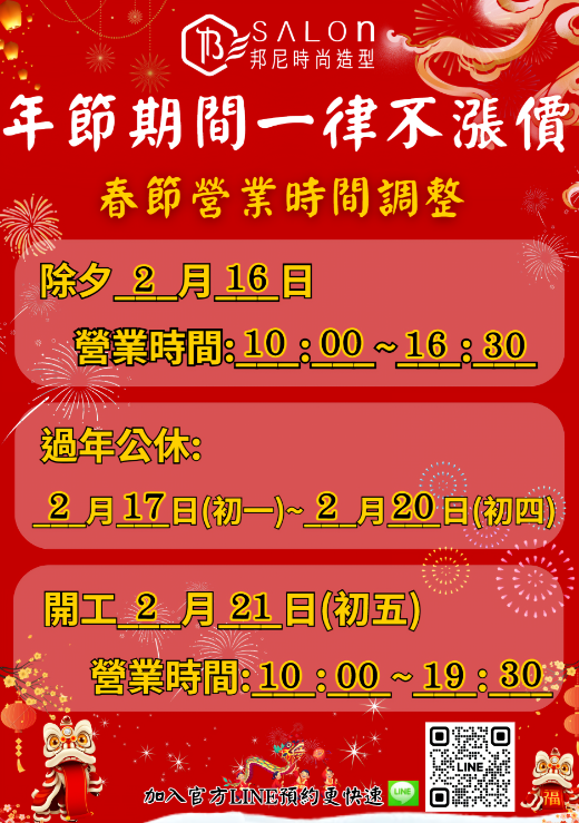 邦尼時尚造型 春節公告來啦!